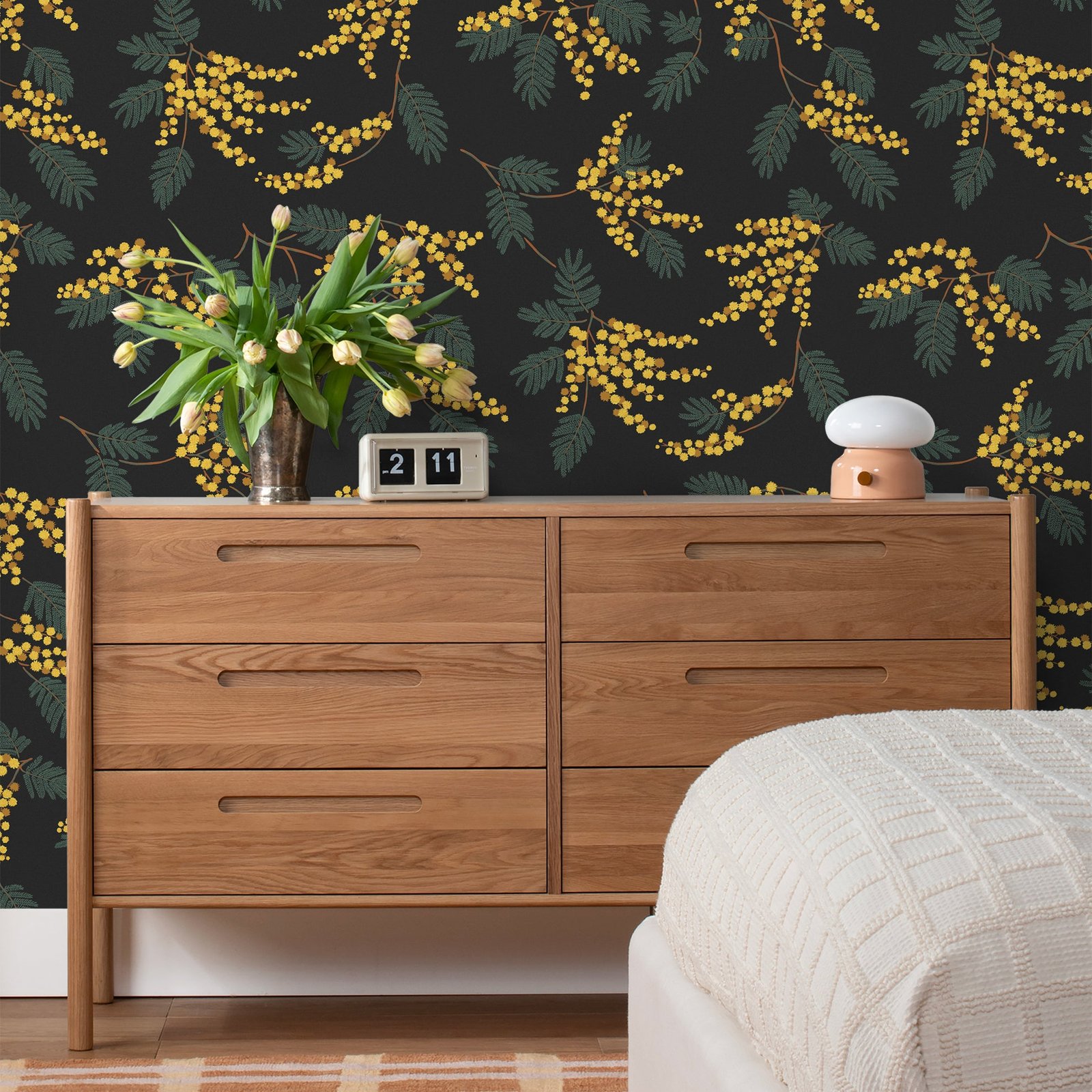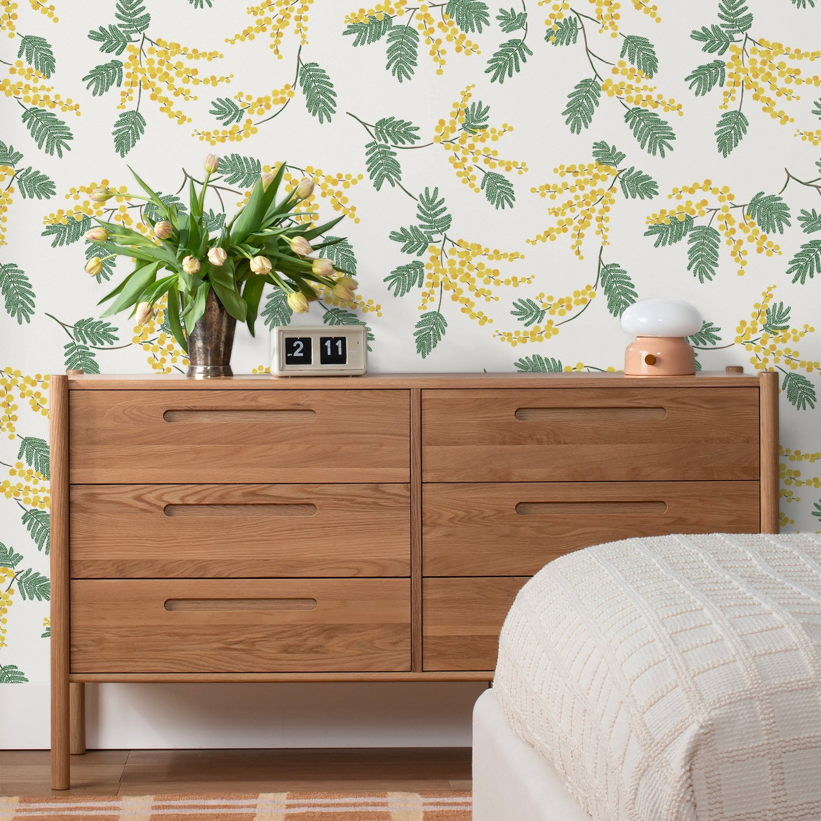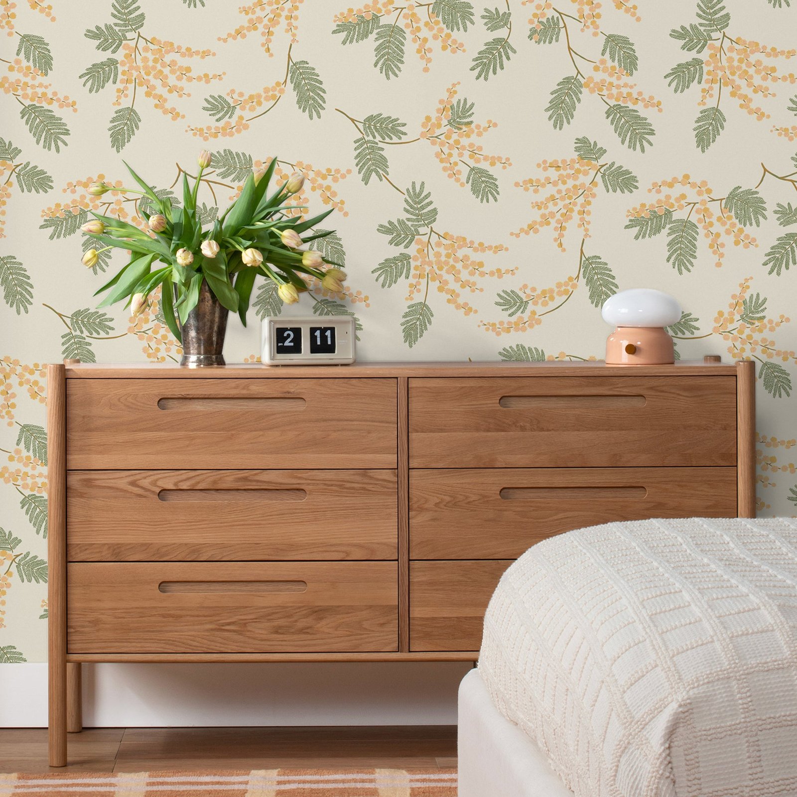 Fresh flowers? We’ve got you covered. Acacia Flower is here to liven up your space with puffy blooms and fluttering fronds that add a playful, nature-inspired touch to your space. It’s like a garden party for your walls—no RSVP required. Each roll is screen printed by hand in the U.S. on high-quality, coated paper for a look and feel that is sure to stand the test of time. Made in collaboration with wallpaper experts Hygge & West.