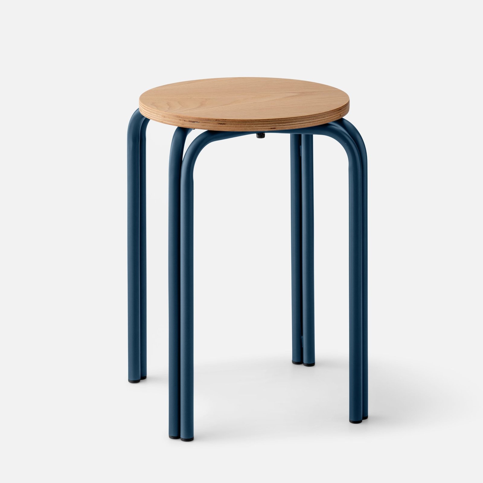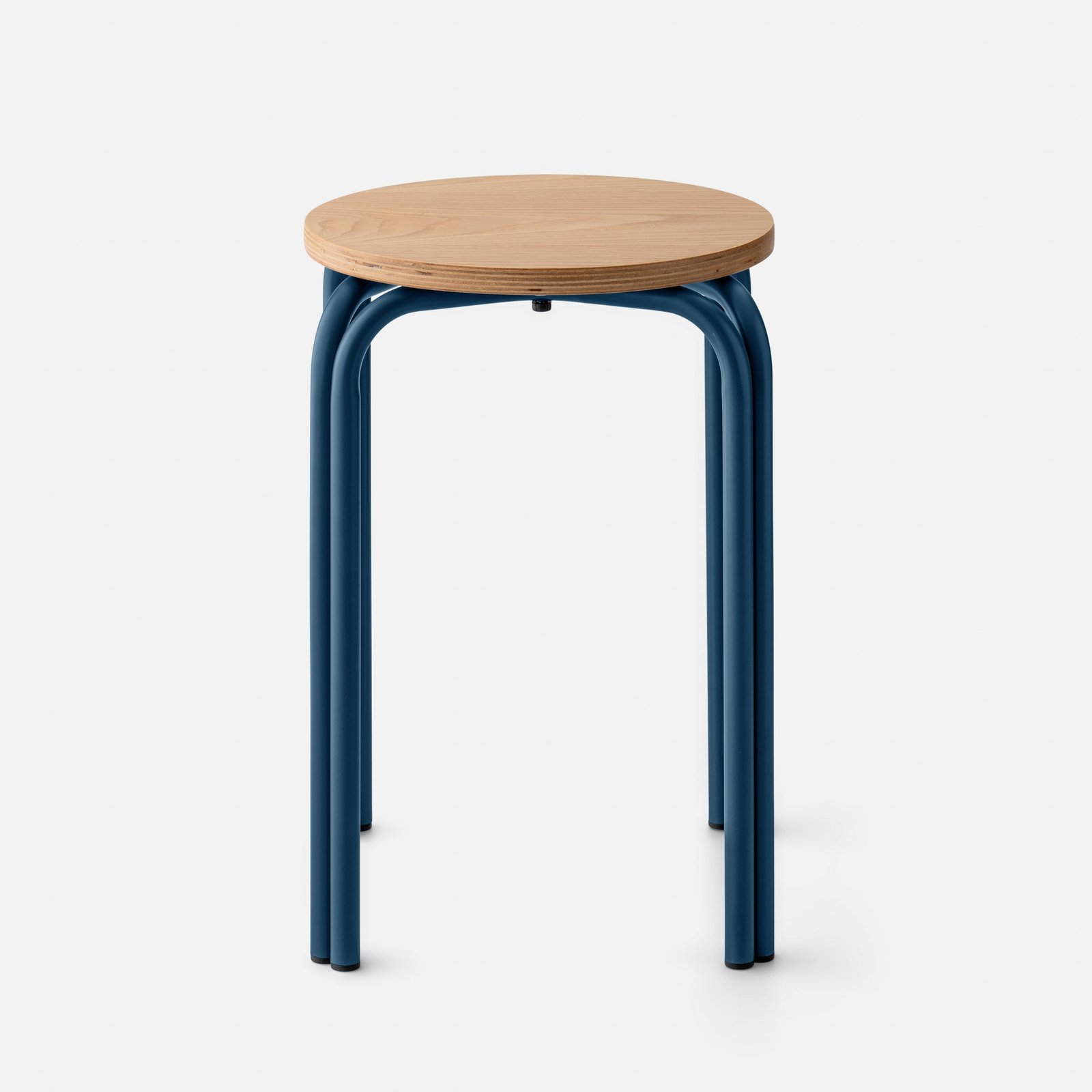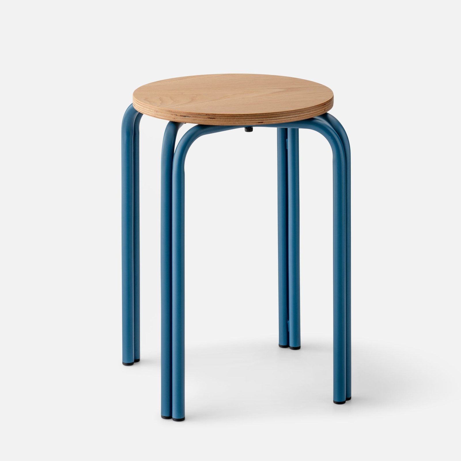 Add a dose of function and Bauhaus-inspired design to any room with the Forma Stool. A playful take on industrial furniture, it pairs a white oak top with exposed plywood edge and steel legs in your pick of color. Set a favorite plant on one, then a stack of books on another.