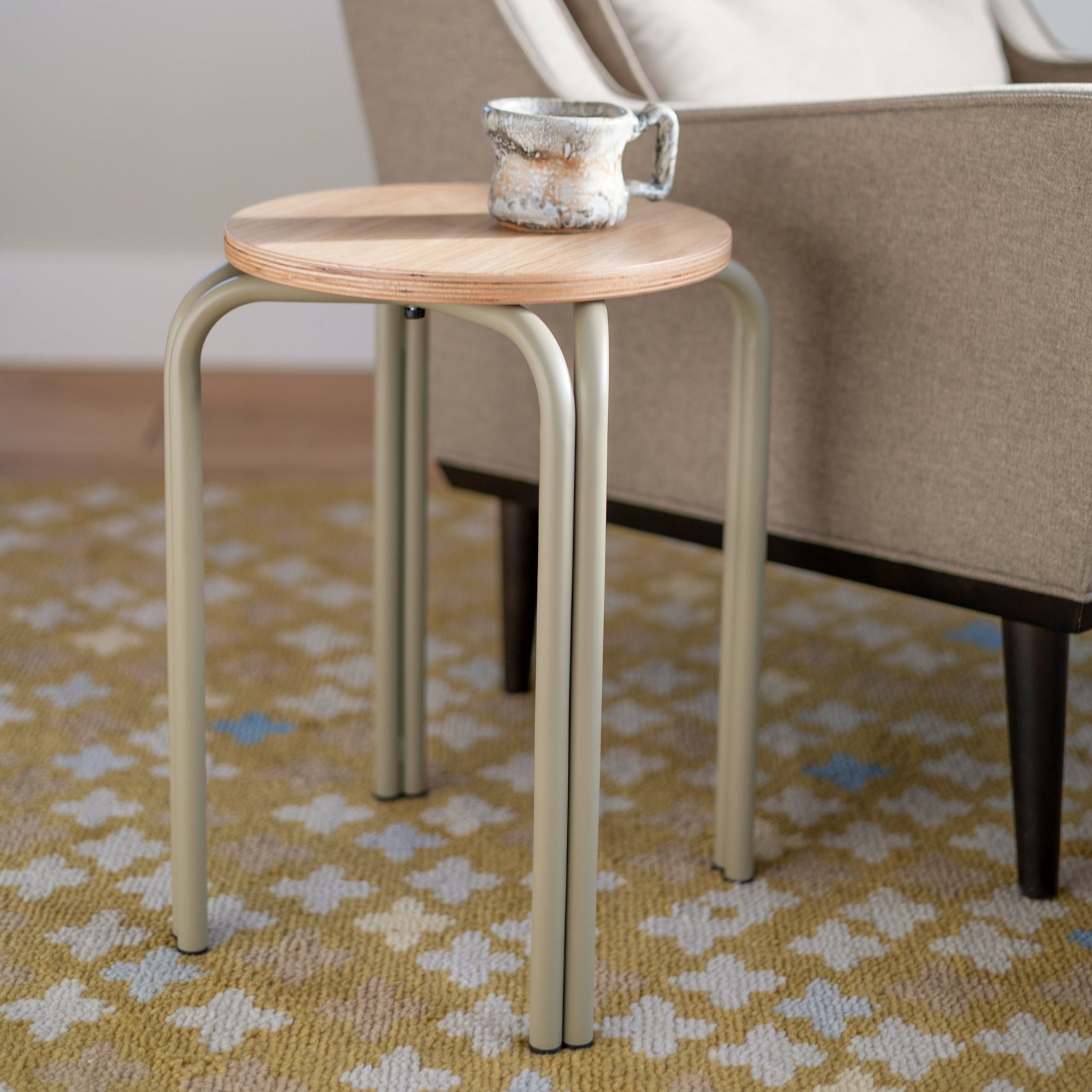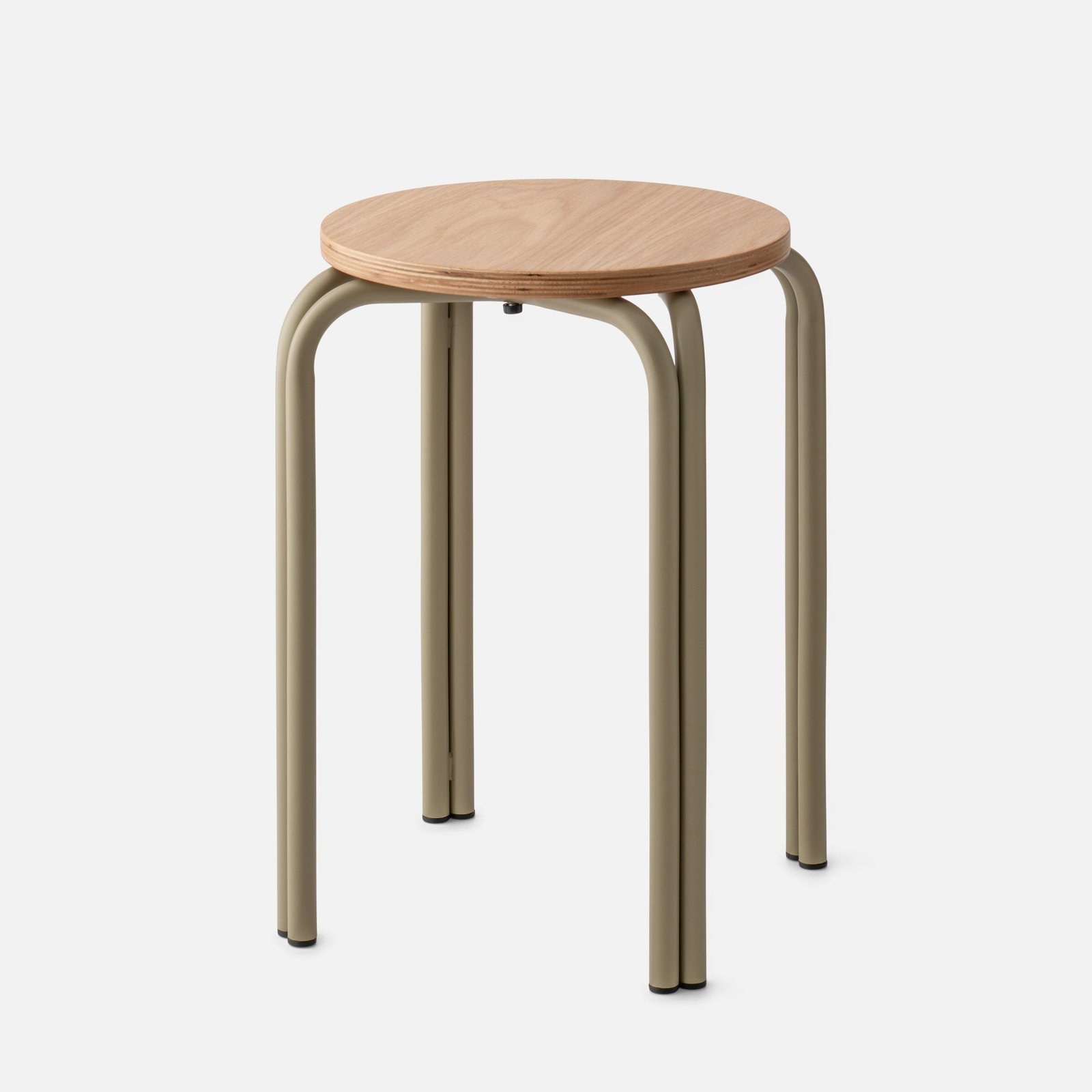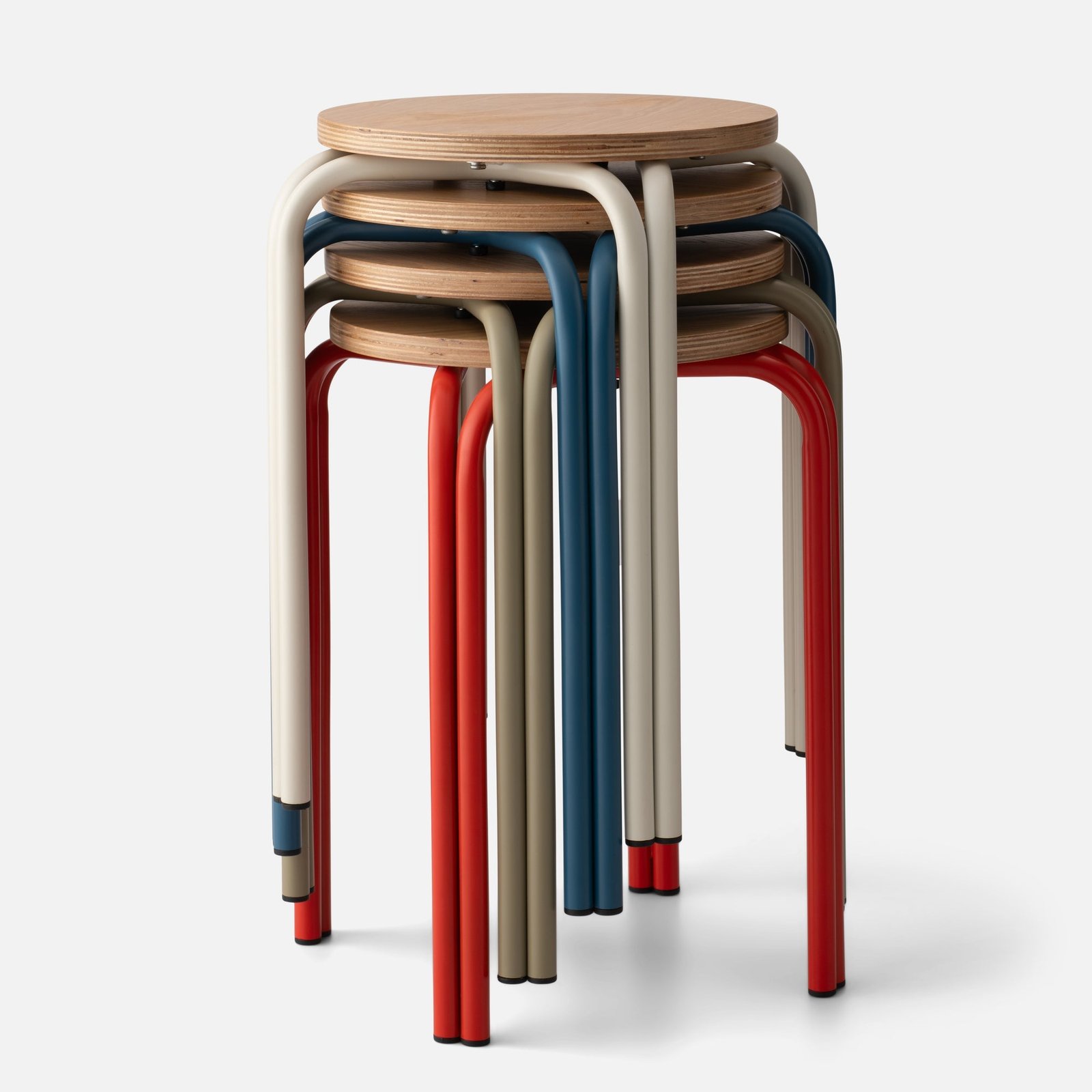 Add a dose of function and Bauhaus-inspired design to any room with the Forma Stool. A playful take on industrial furniture, it pairs a white oak top with exposed plywood edge and steel legs in your pick of color. Set a favorite plant on one, then a stack of books on another.