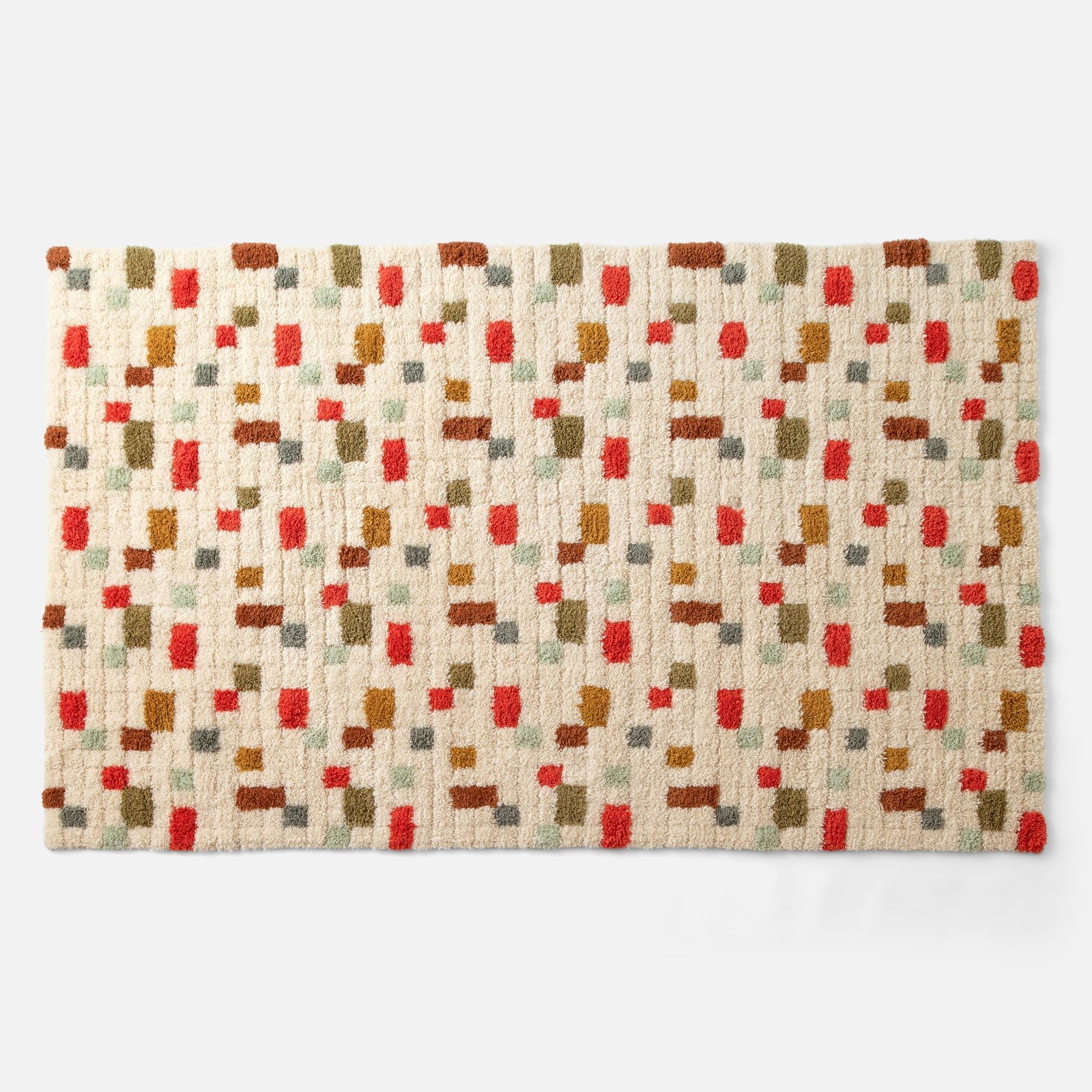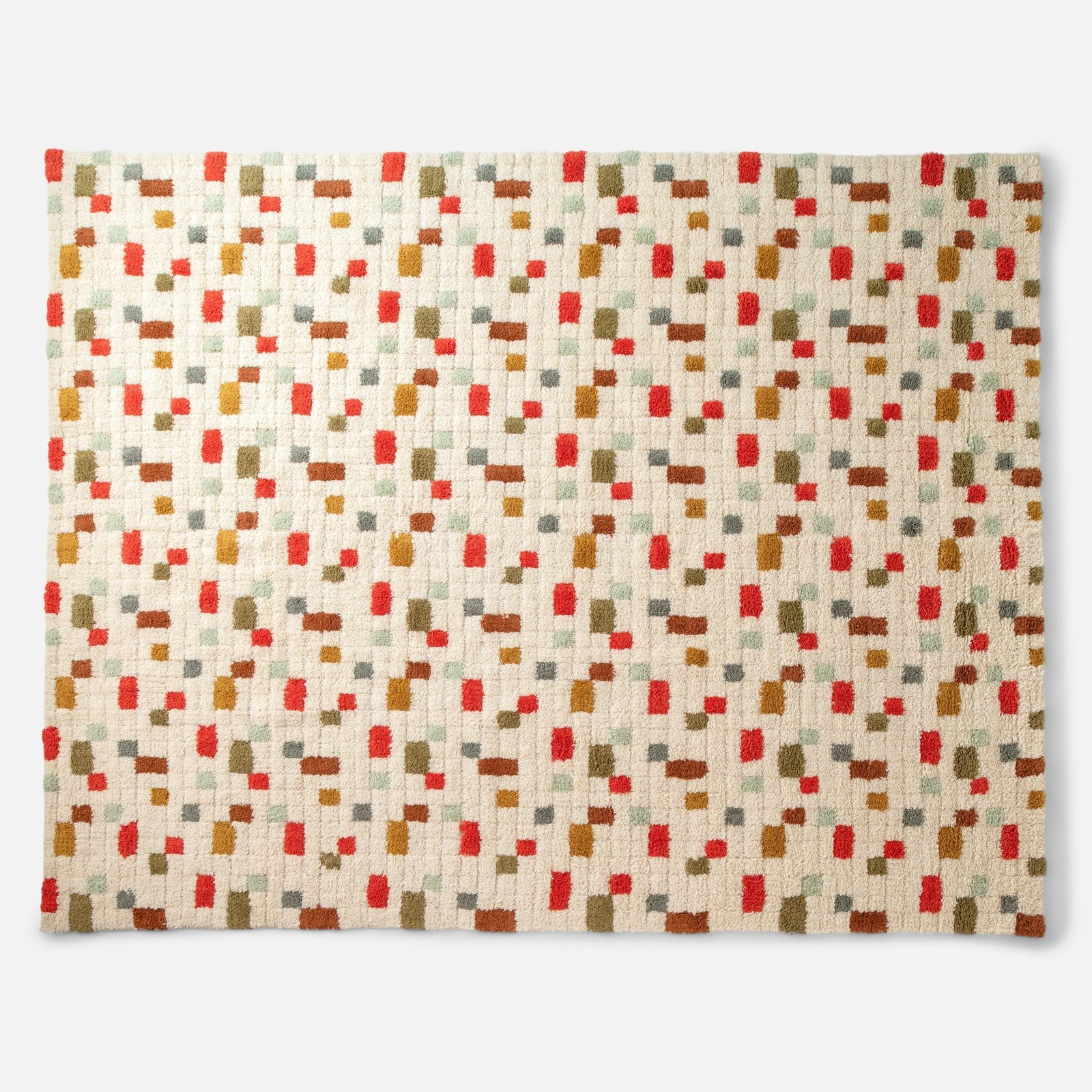 Crafted by master artisans in India, this rug’s high pile texture provides a plush wool surface. And with a geometric pattern full of movement and earthy yet vibrant hues, it brings a playful, cozy touch to your decor.